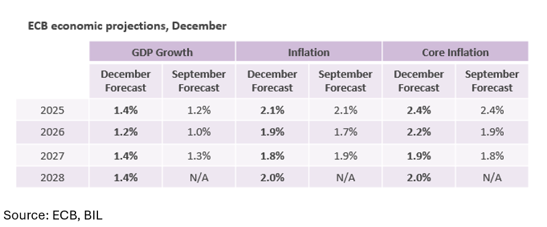 Inflation is expected to undershoot the 2% target until 2028. However, core inflation, which excludes volatile items like food and energy, is envisaged slightly higher, at 2.2% next year (previously 1.9%).