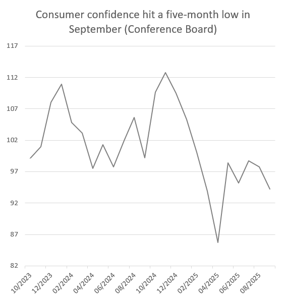 In August, there were 0.98 job openings for every unemployed person, down from 1.0 in July. The labour market has significantly slowed in recent months, driven by reduced demand for workers due to uncertainty surrounding tariff policies and the growing adoption of artificial intelligence. Additionally, US immigration policies have limited labour supply. Despite a decrease in layoffs, as employers are holding onto their workforce, weak hiring trends could make it more challenging for those who lose their jobs to find new ones.