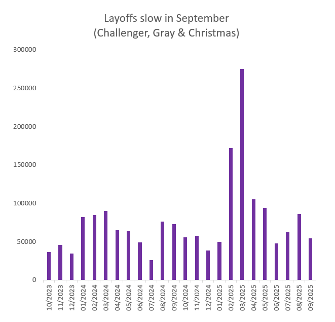 The Challenger Job Cuts survey supports the idea that employers are retaining their employees, as US companies announced the fewest job cuts in three months in September. Job cuts fell to 54,064 compared to 85,979 in August. However, when looking at the year as a whole, companies have announced the highest number of layoffs since the pandemic began. This increase is largely attributed to significant layoffs among federal workers, particularly by the Department of Government Efficiency (DOGE). This trend may accelerate in the coming weeks if the government shutdown persists, with the potential for federal workers to be fired rather than furloughed, as indicated by President Trump's warnings.